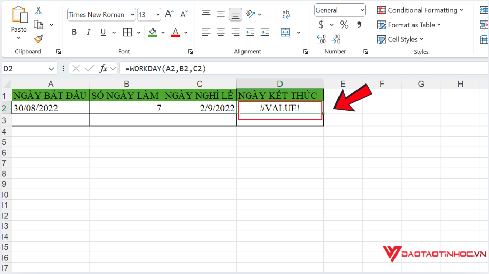 4. Lỗi thường gặp khi sử dụng hàm WORKDAY trong Excel
