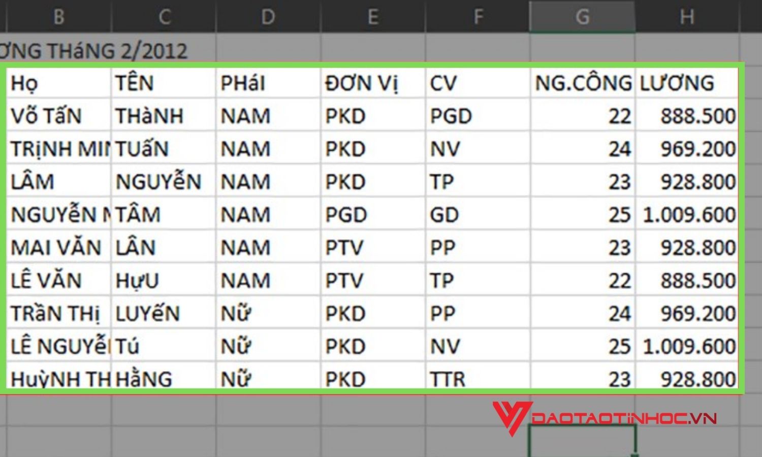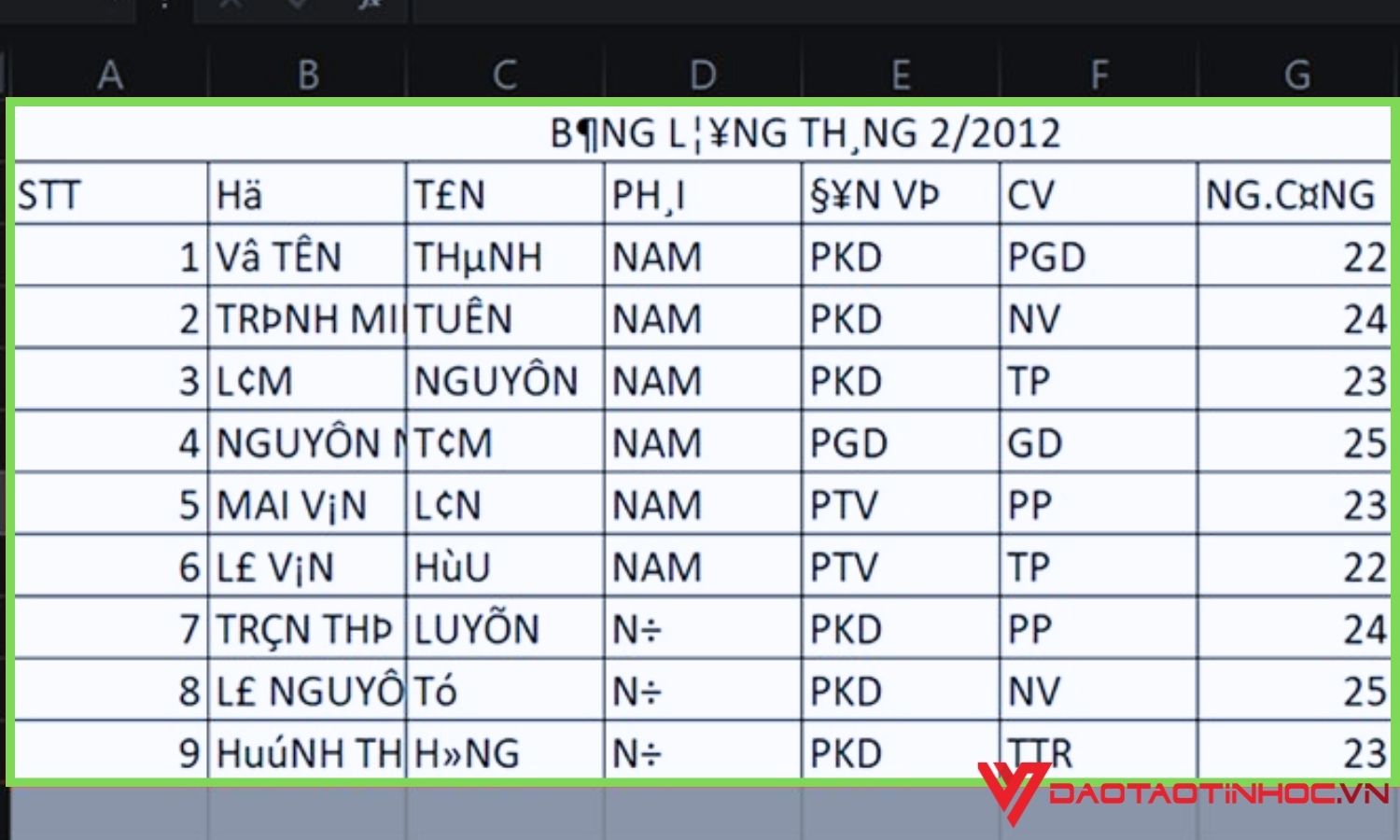 Bước 7: Cuối cùng, bạn hãy mở 1 file excel mới lên và nhấn vào 1 ô bạn muốn chứa dữ liệu vừa sửa chữa xong. Và nhấn tổ hợp phím tắt Ctrl + V để sao chép dữ liệu đã lưu ra. Ngoài ra bạn cũng có thể sử dụng chuột phải để bôi đen và sao chép dữ liệu ra file. Đây là kết quả sau khi bạn sử dụng cách sửa lỗi font chữ trong excel khi tải về của Đào tạo tin học.