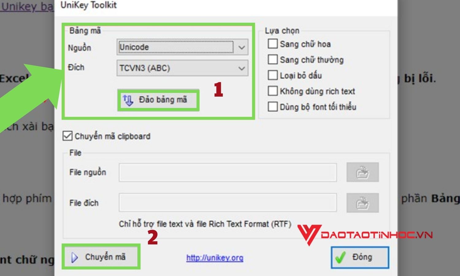 Bước 3: Kế tiếp bạn nhấn tổ hợp phím Ctrl + Shift + F6. Sau đó hộp thoại của Unikey Toolkit sẽ xuất hiện -> Bảng mã