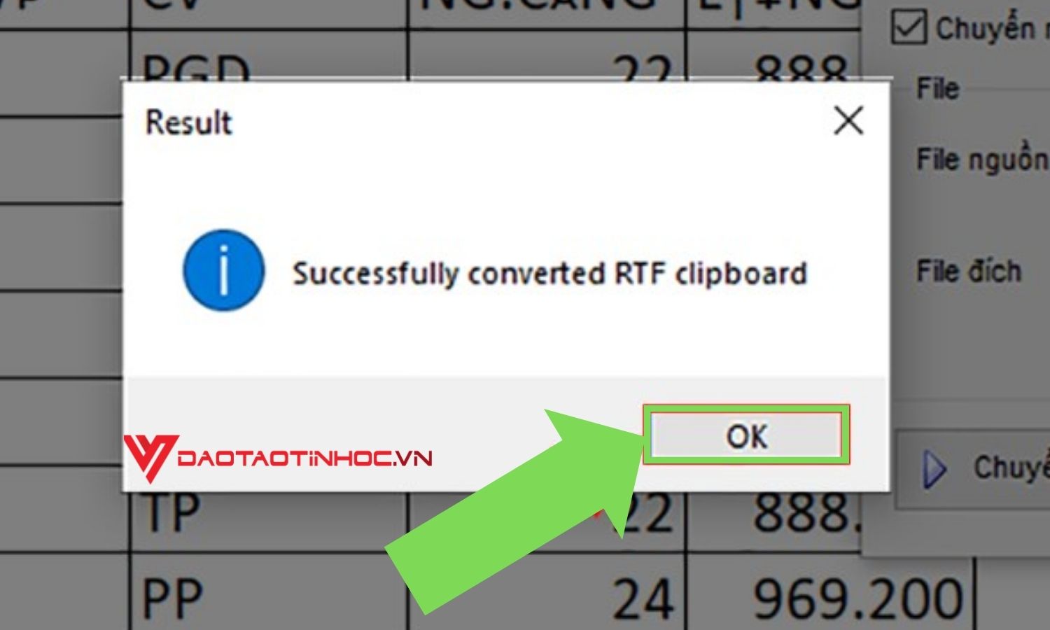 Bước 5: Nhấn vào chuyển mã cũng là cách chuyển mã để sửa lỗi font chữ trong excel khi tải về