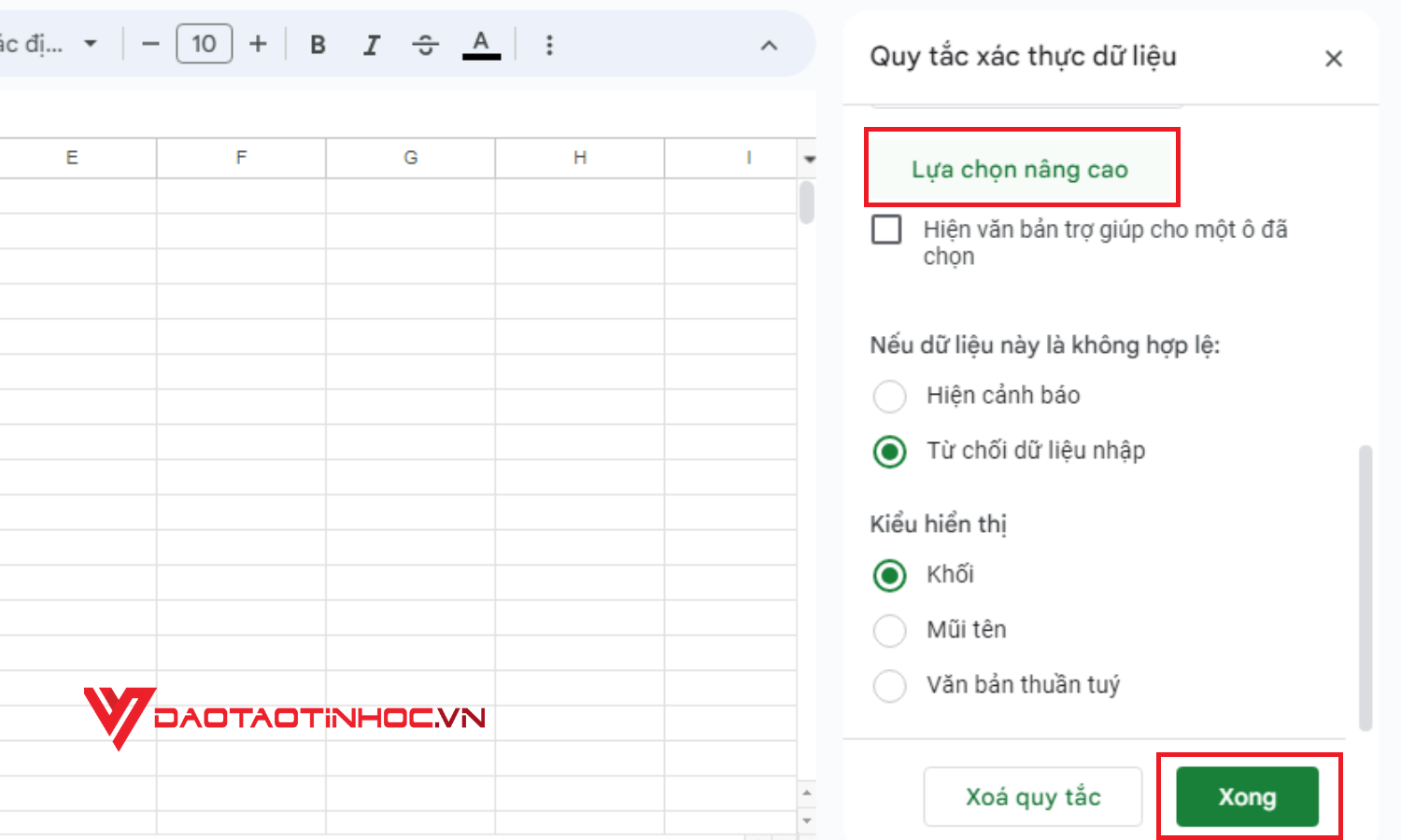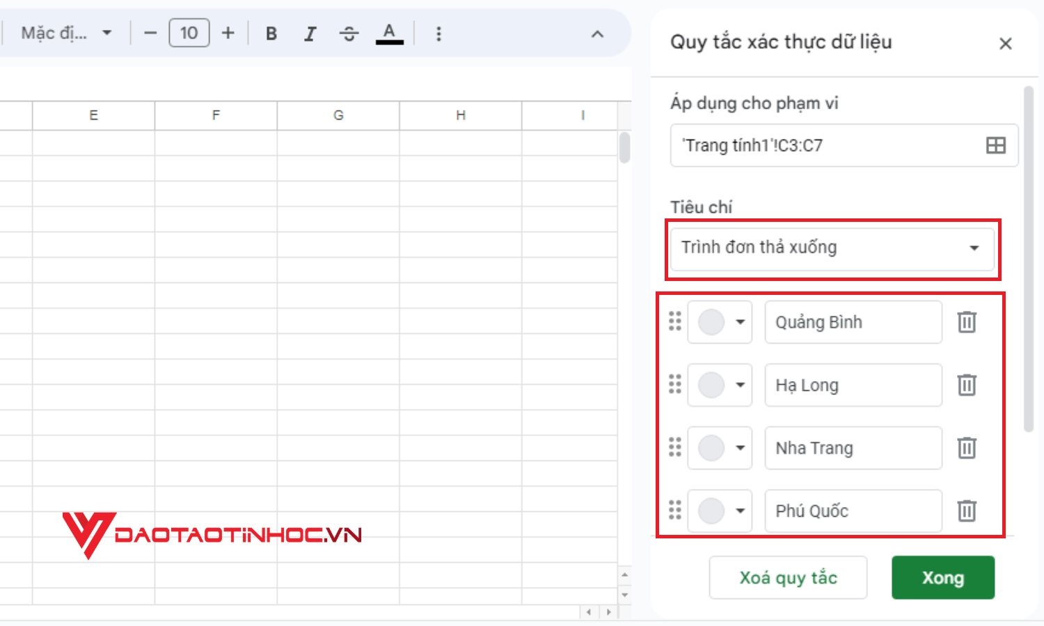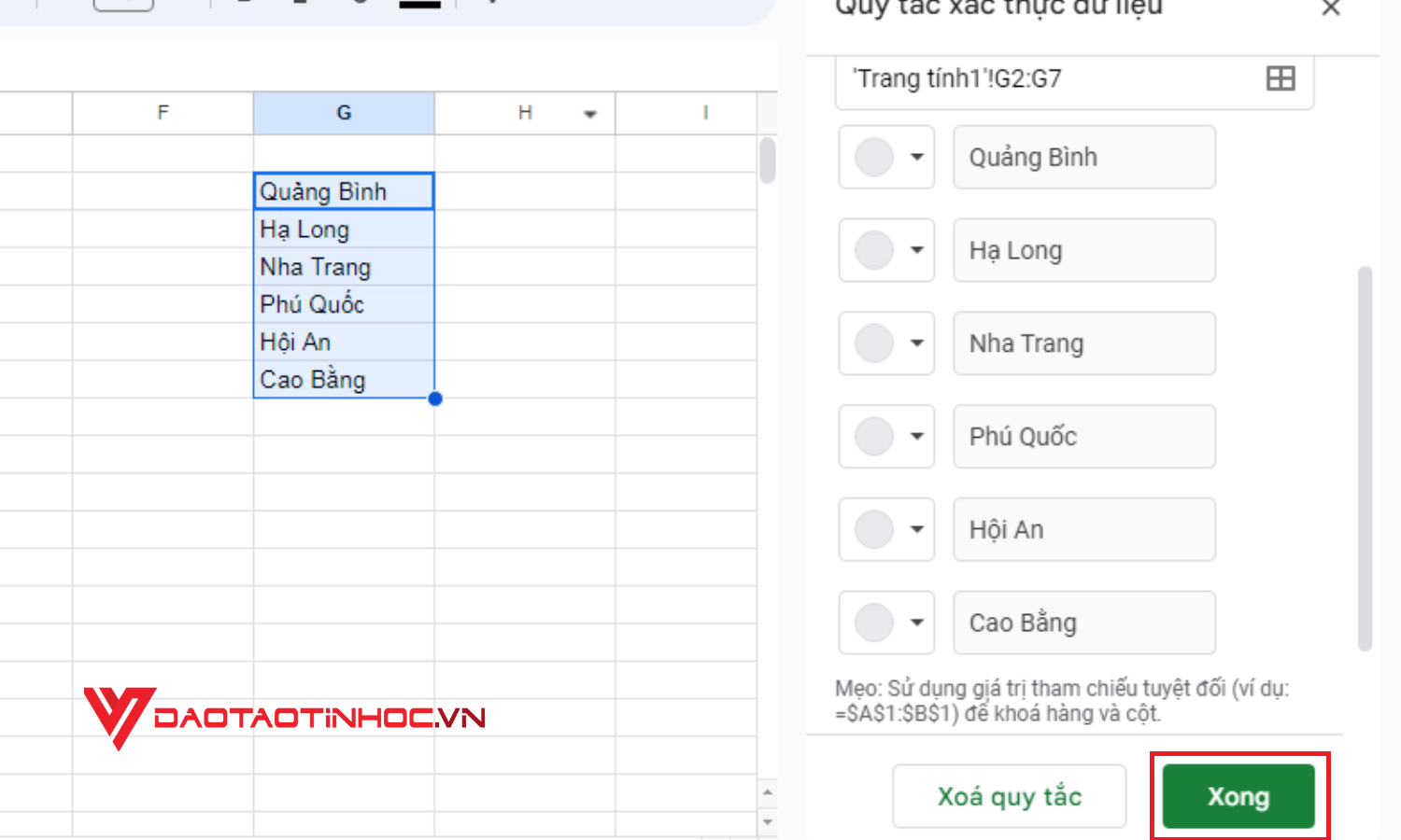 Cách tạo lựa chọn trong Google Sheet bằng cách tự nhập dữ liệu - Bước 5
