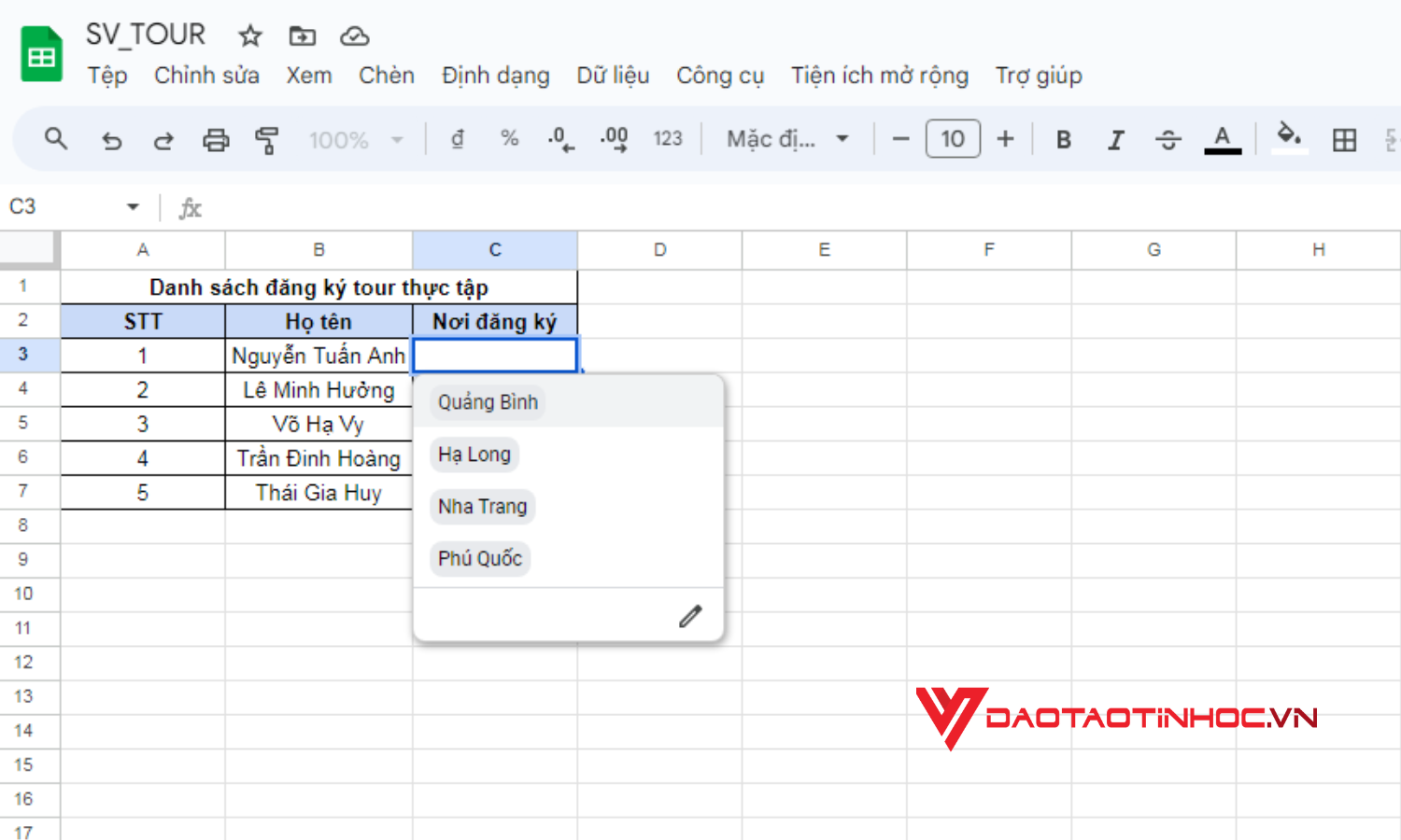 Khi làm việc trên một bảng tính phức tạp, việc tạo ra các lựa chọn dễ dàng và nhanh chóng rất cần thiết. Tuy nhiên, không phải ai cũng có thể tạo lựa chọn trong Google Sheet một cách dễ dàng. Để giúp mọi người nhập liệu nhanh hơn, bài viết này của Đào tạo tin học sẽ hướng dẫn cách tạo lựa chọn trong Google Sheet.