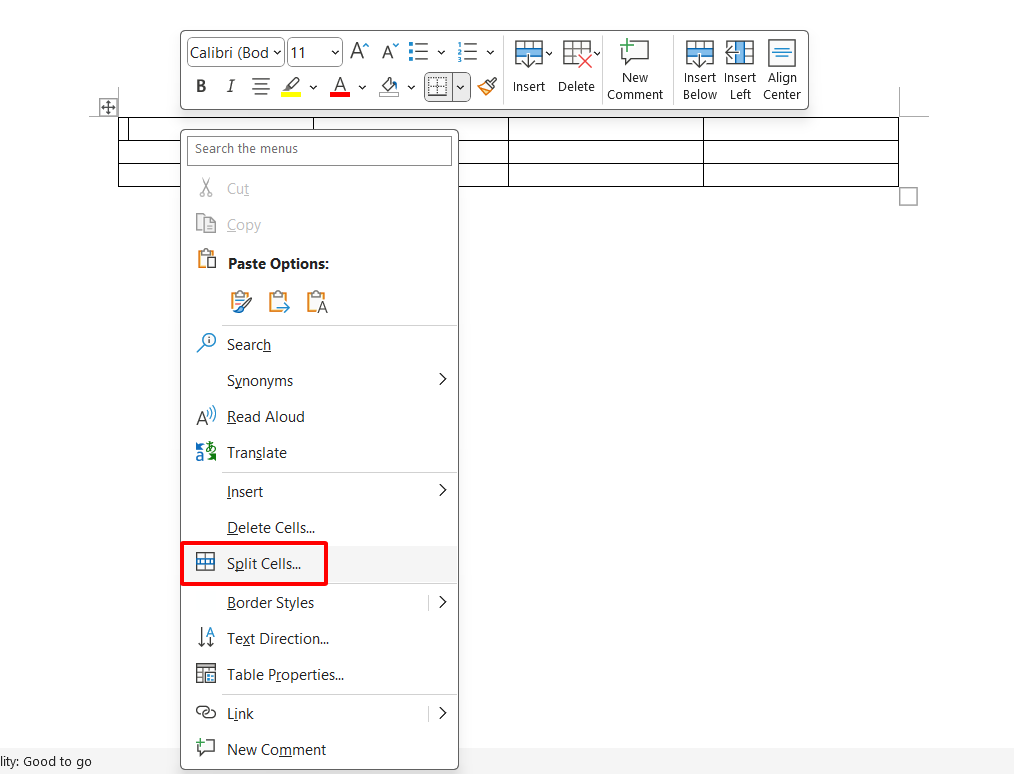 Thêm ô trong Word bằng Split Cells