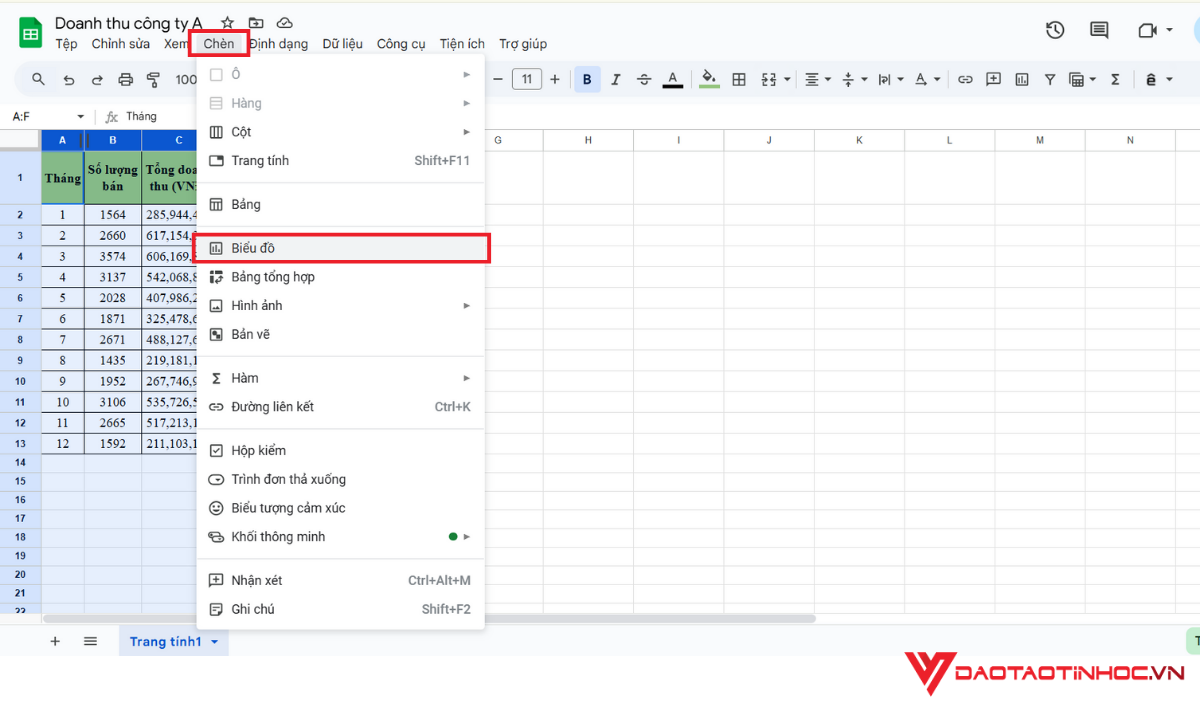 Vẽ biểu đồ trong Google Sheets - Bước 1