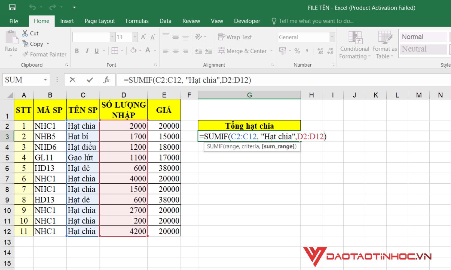 3. Hàm SUMIF – Hàm Cơ Bản Để Tính Tổng Có Điều Kiện