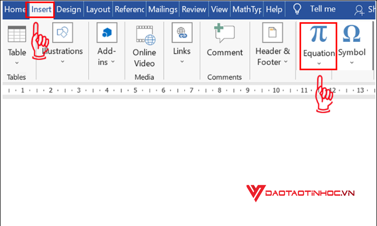 Cách viết công thức toán học trong Word bằng Equation - Bước 1