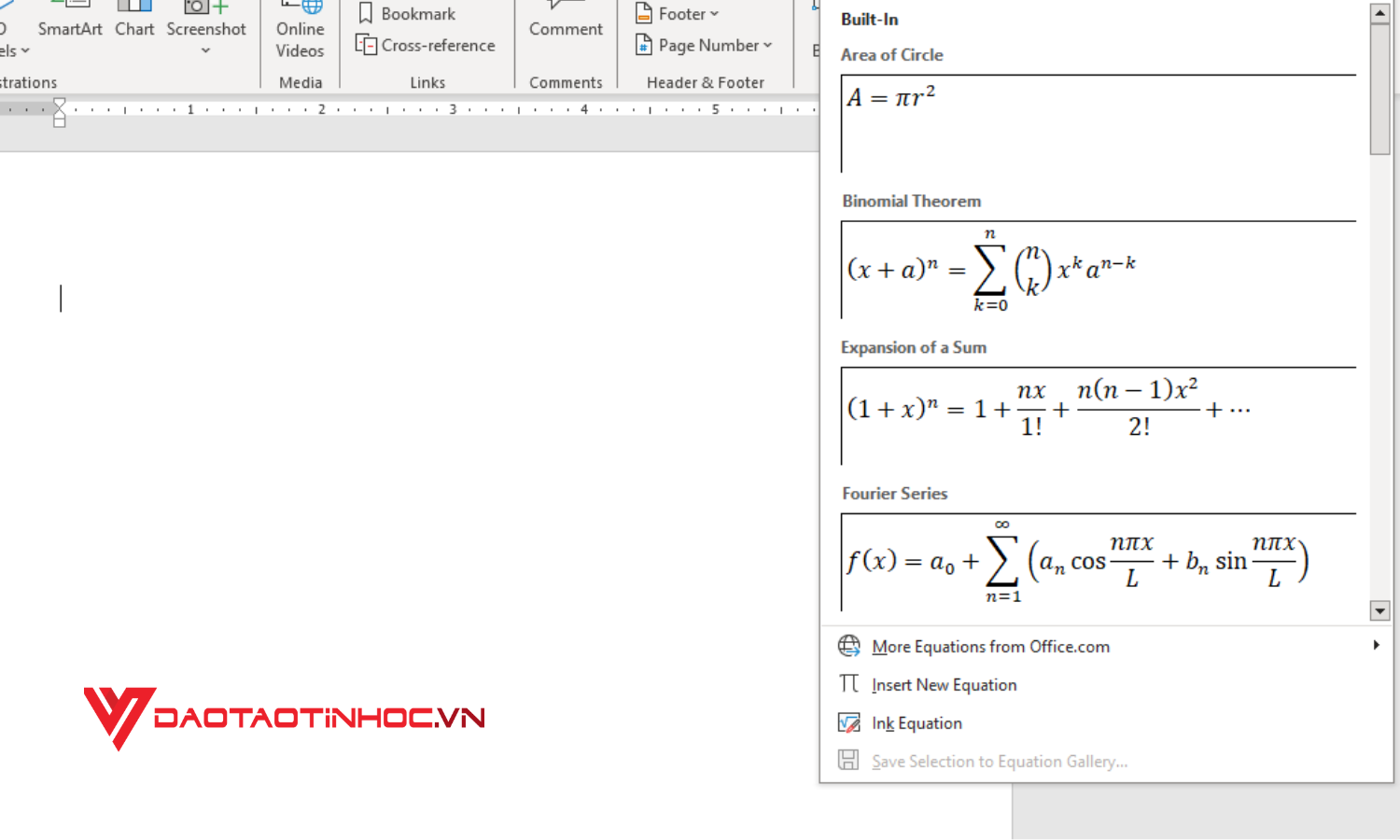 Cách viết công thức toán học trong Word bằng Equation - Bước 4
