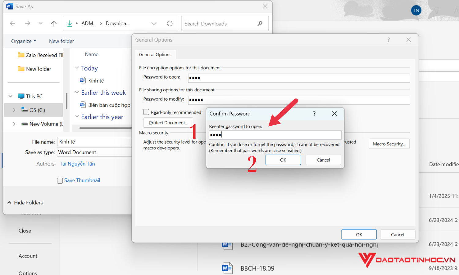 HƯỚNG DẪN CÁCH ĐẶT MẬT KHẨU CHO FILE WORD ĐƠN GIẢN