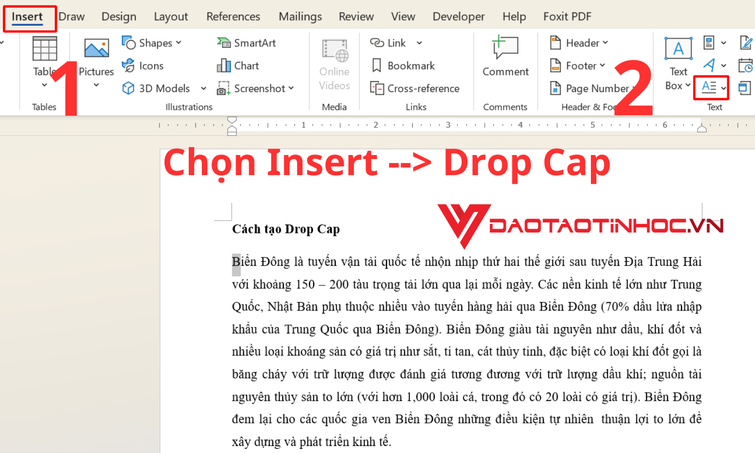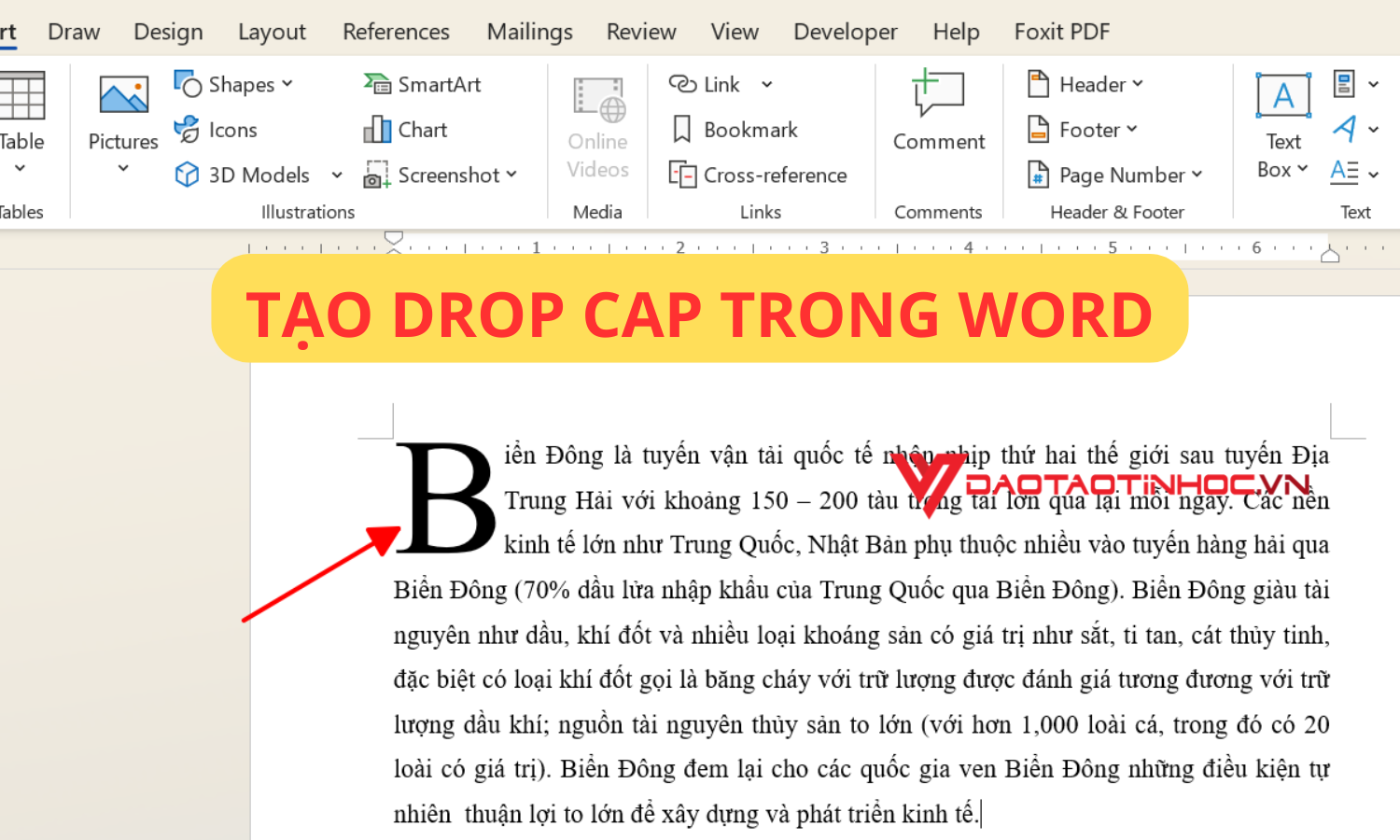 Bạn muốn làm nổi bật đoạn văn bản đầu tiên trong Word của mình? để đoạn văn trở nên thu hút và trông chuyên nghiệp hơn, thì Drop Cap sẽ là một tính năng tuyệt vời để tạo điểm nhấn cho văn bản. Ở bài viết này, Đào tạo tin học sẽ giới thiệu bạn tính năng tạo hiệu ứng chữ ngay trên văn bản bằng cách tạo Drop Cap trong Word, giúp tài liệu của bạn trở nên chuyên nghiệp hơn.