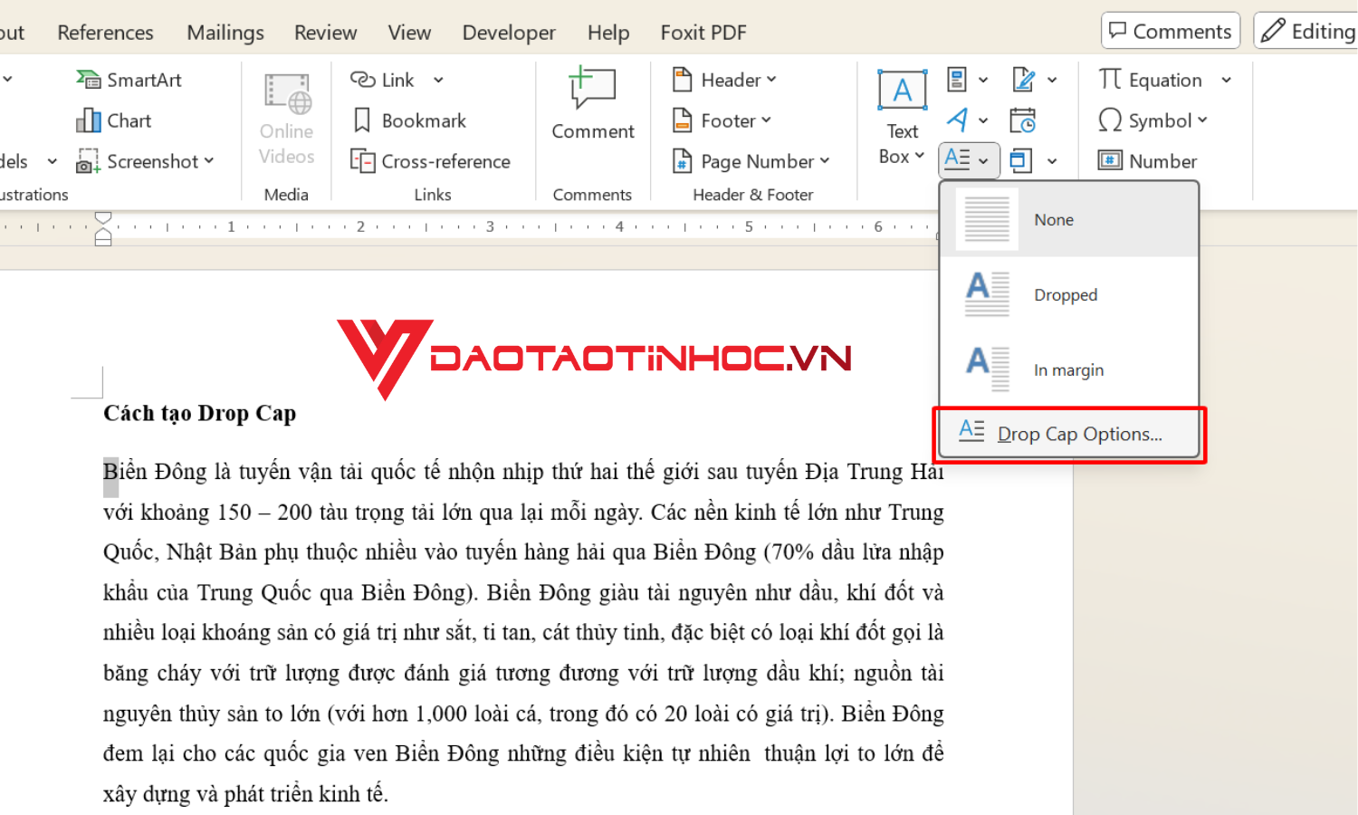Hướng dẫn tạo Drop Cap trong Word